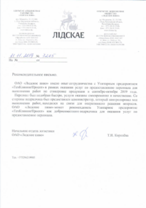 ОАО «Лидское пиво» имело опыт сотрудничества с Унитарным предприятием «ТехКлинингПроект» в рамках оказания услуг по предоставлению персонала для выполнения работ по стикеровке продукции в сентябре-октябре 2019 года. Персонал был подобран быстро, услуги оказаны своевременно и качественно. Со стороны подрядчика был...